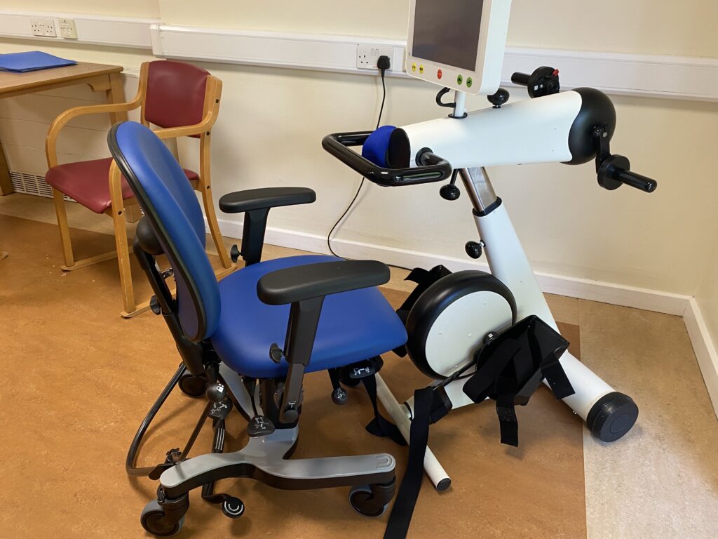 Emily Abba, Senior Physiotherapist on the NRC, said: “This chair is used in tandem with the MOTOmed bike. We use it every day for our patients, as it’s really good for building up strength and endurance. It’s been really well received.