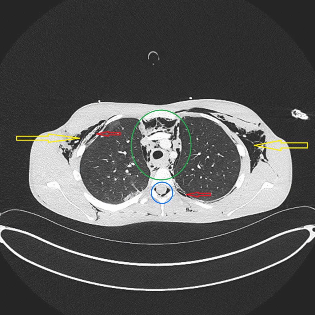 A CT scan allowed medics to diagnose ‘air leak syndrome’, in which pockets of gas or air had collected in parts of the body including the spinal canal, between the lungs, and under the skin.